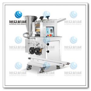 旭眾牌JGB-180型仿手工餃子機是我公司開發(fā)生產(chǎn)的先進的自動餃子生產(chǎn)設(shè)備。設(shè)備包括主動壓皮部分、自動供餡部分、自動包合成型部分、自動成品輸送部分,并且只要更換模具,就可制鍋貼等食品。