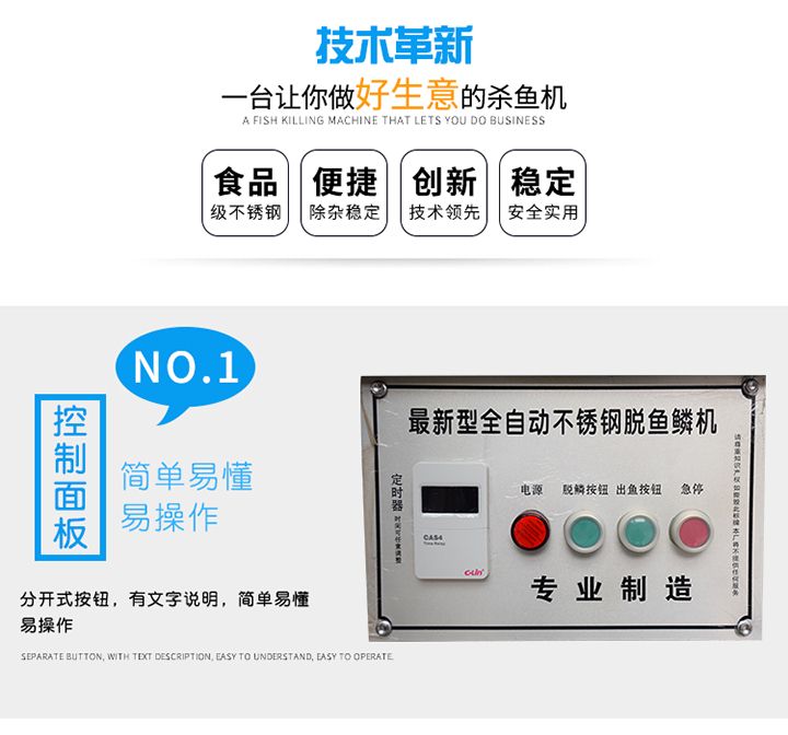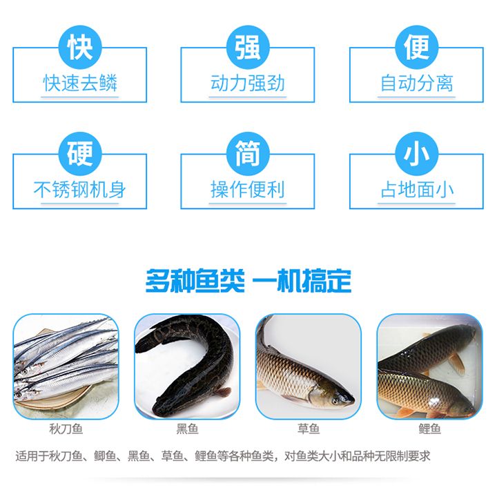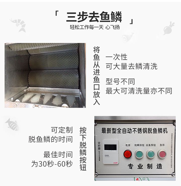 3.功能強大,直接實現去魚鱗和殺魚的工藝,生產效率高,產量大。