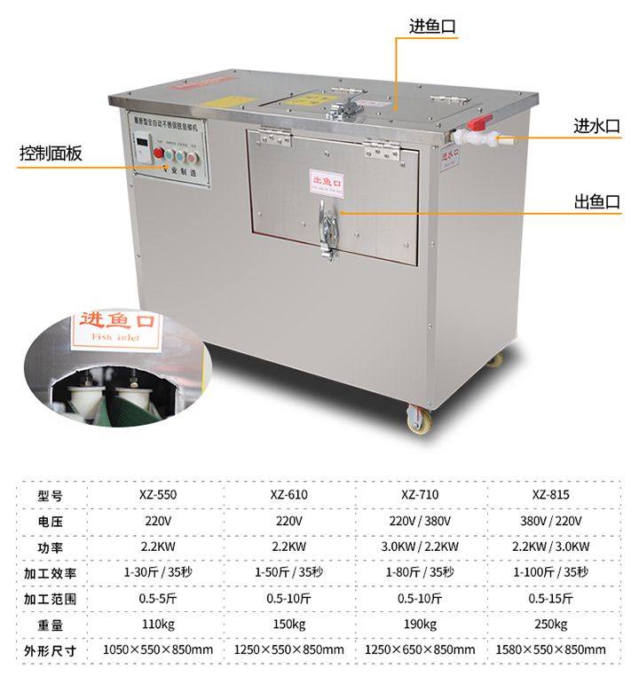 | 型號 | XZ-550去魚鱗機 | XZ-610去魚鱗機 | XZ-710去魚鱗機 | XZ-815去魚鱗機 |