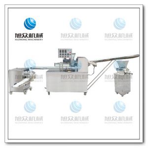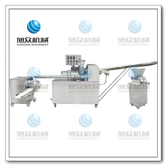 旭眾牌SZ-09A多功能單段酥餅機(jī)是經(jīng)面輪將面皮壓成合適厚度,由自動(dòng)出餡機(jī)將餡料充填至面皮上,經(jīng)卷面輪將面皮卷成圓柱狀,后以成型刀具切割成球狀,或是長條狀餅胚,再經(jīng)過打餅成形,整個(gè)成形過程不會(huì)破壞面皮筋性。