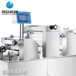 旭眾牌XZ-15C三道搟面酥餅機是我公司仿手工制作面食產(chǎn)品的機型,占地面積小,重量輕,它吸收國內(nèi)傳統(tǒng)手工制作技術,即運用搟面杖壓面和打擊面團,以保證高面筋性和面帶的密度,并綜合考慮面食的口感而研發(fā)。